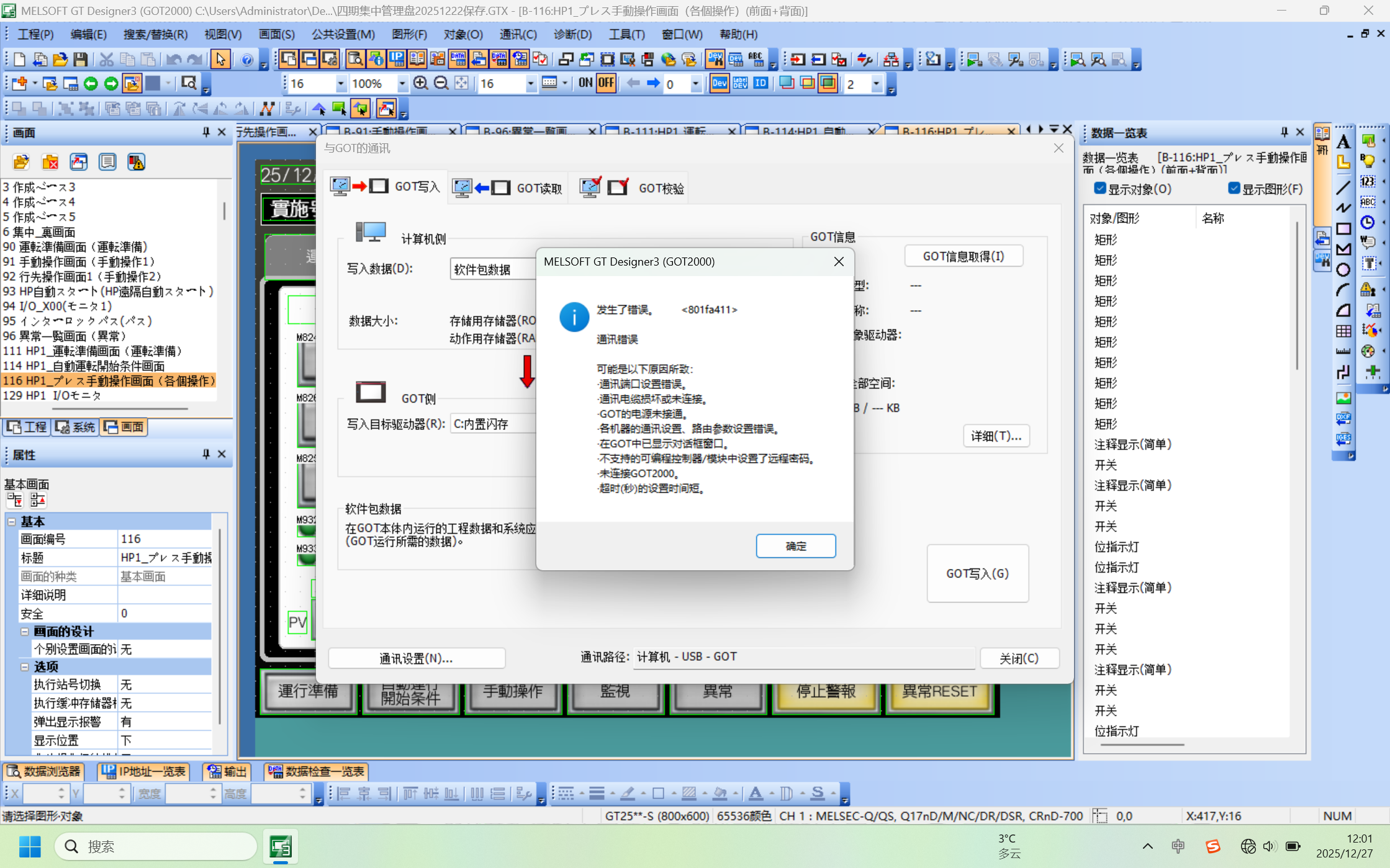 三菱人機:GT2512-STBA  灌入程式程式時掉線,后面就警報這個頁面,請各位大神幫忙分析下 謝謝