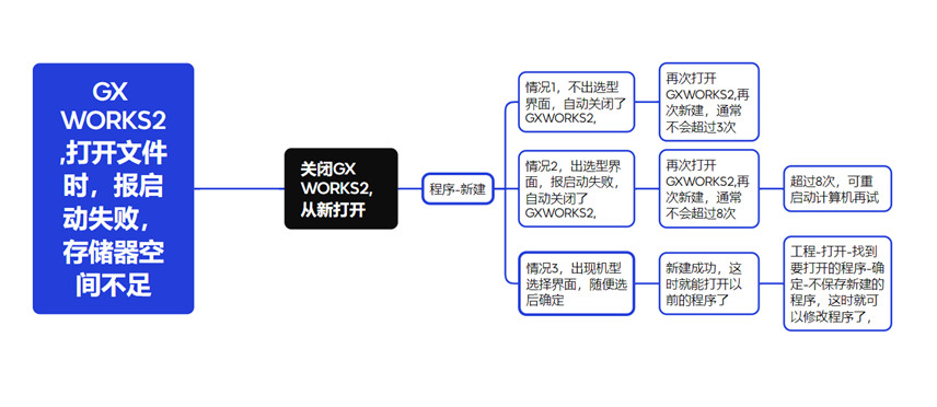 解決方法    打開GXWORKS2-工程-新建-3-10次新建后會新建成功,在此基礎上打開要修改的程序即可