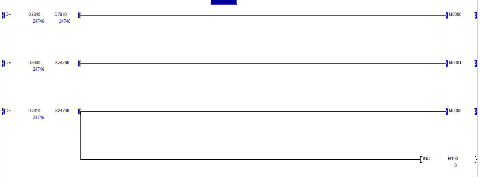 如圖,數(shù)值明明相等,就是不接通,不是雙線圈,交叉搜索沒有重復(fù)。已斷電重啟多次,程序也是在線寫入