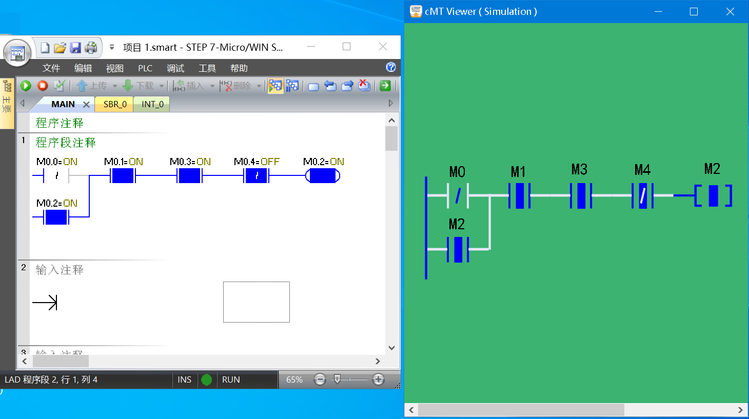只是這些梯形圖是用位狀態(tài)指示元件組成,不能直接將200 smart梯形圖轉(zhuǎn)換為觸摸屏上的梯形圖,這些元件的布局也耗費時間,程序改了,這里也要跟著改,而且只能使用全局變量,不能使用局部變量,為了簡化,某些指令如比較指令等要事先將比較結(jié)果用全局位變量替代
