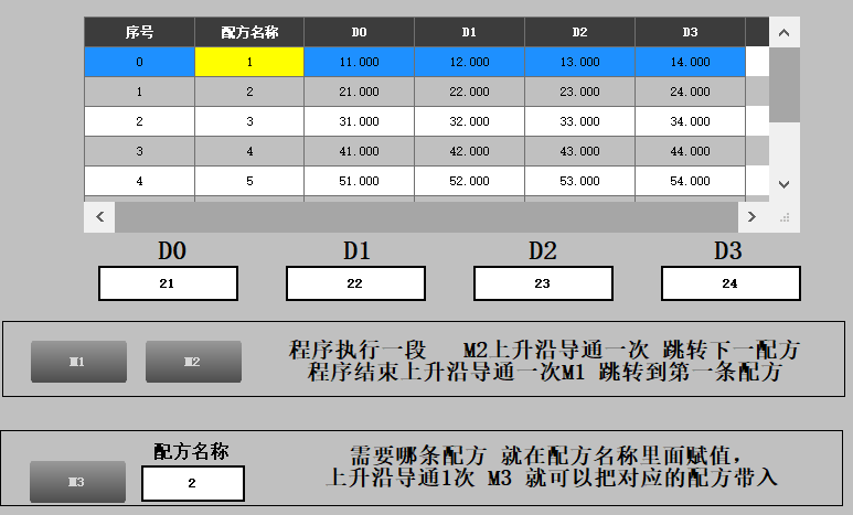 請教下,用昆侖通泰做配方,plc執行完第一條配方程序,接著執行第二條配方程序,第三條第四條.....,這個腳本程序如何做,有沒案例截圖分享