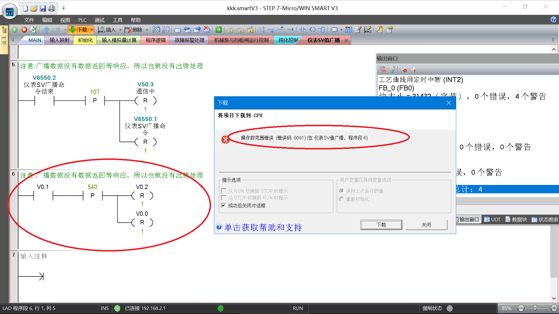 先在是把修改后的程序直接下載進去,然后在在線編輯,啥都不改,直接再下載,依然報91號錯誤
