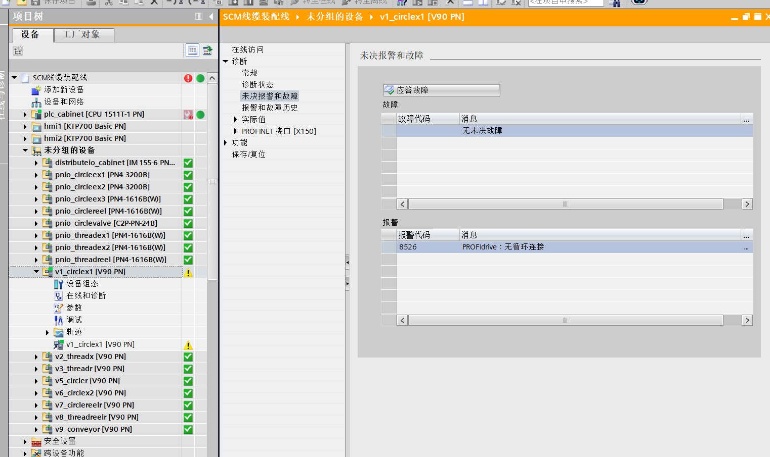 在博圖V20中,使用PLC X1口串聯了8個V90 PN,全部連接OK后,只要一斷電重啟,第一個V90 PN必報8526,后面7個V90是正常的,再次分配第一個V90的設備名稱后,在線監控顯示連接OK,無解。。。