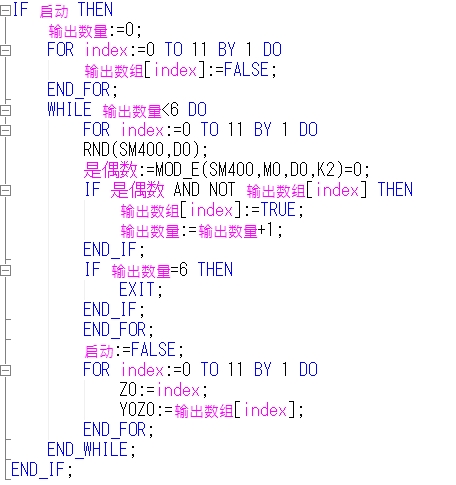 FX3U  12個輸出中隨機選6個同時輸出2秒后斷開,3秒后再隨機選6個同時輸出。程序怎么編寫。在12個輸出中隨機選