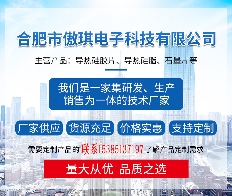 合肥傲琪電子科技有限公司,深耕熱管理領(lǐng)域,擁有完整的導(dǎo)熱材料產(chǎn)品線,并可提供專業(yè)的選型指導(dǎo)與定制化模切服務(wù)。我們相信,通過精準(zhǔn)的材料應(yīng)用,可以有效提升產(chǎn)品的市場(chǎng)競(jìng)爭(zhēng)力。