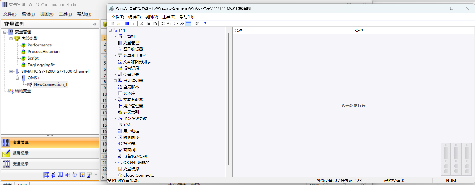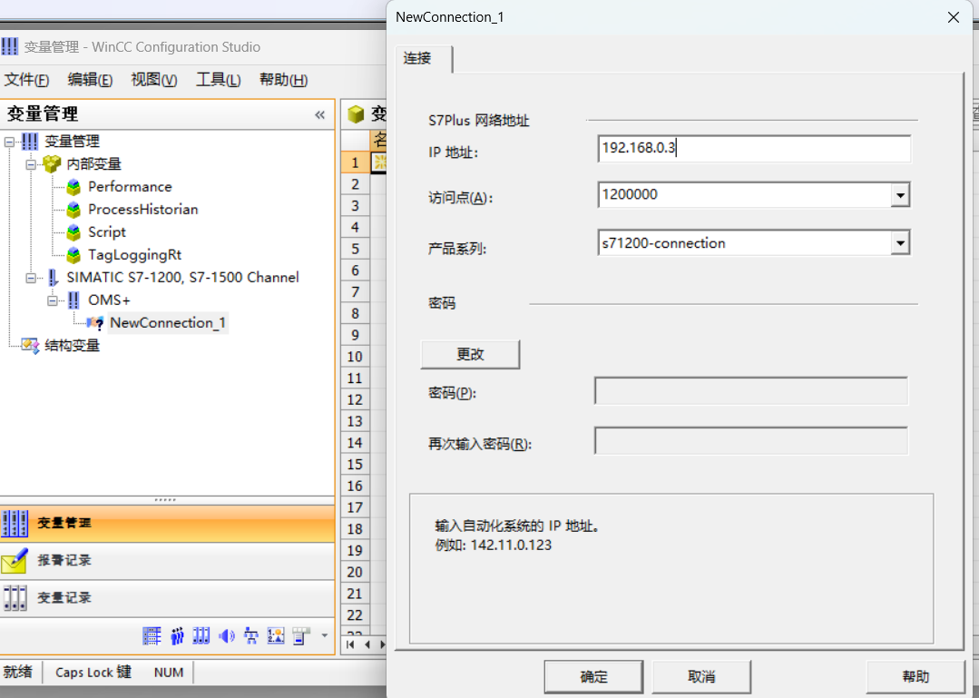 WINCC7.5與1200無實物仿真時,變量管理界面連接時始終顯示“?”