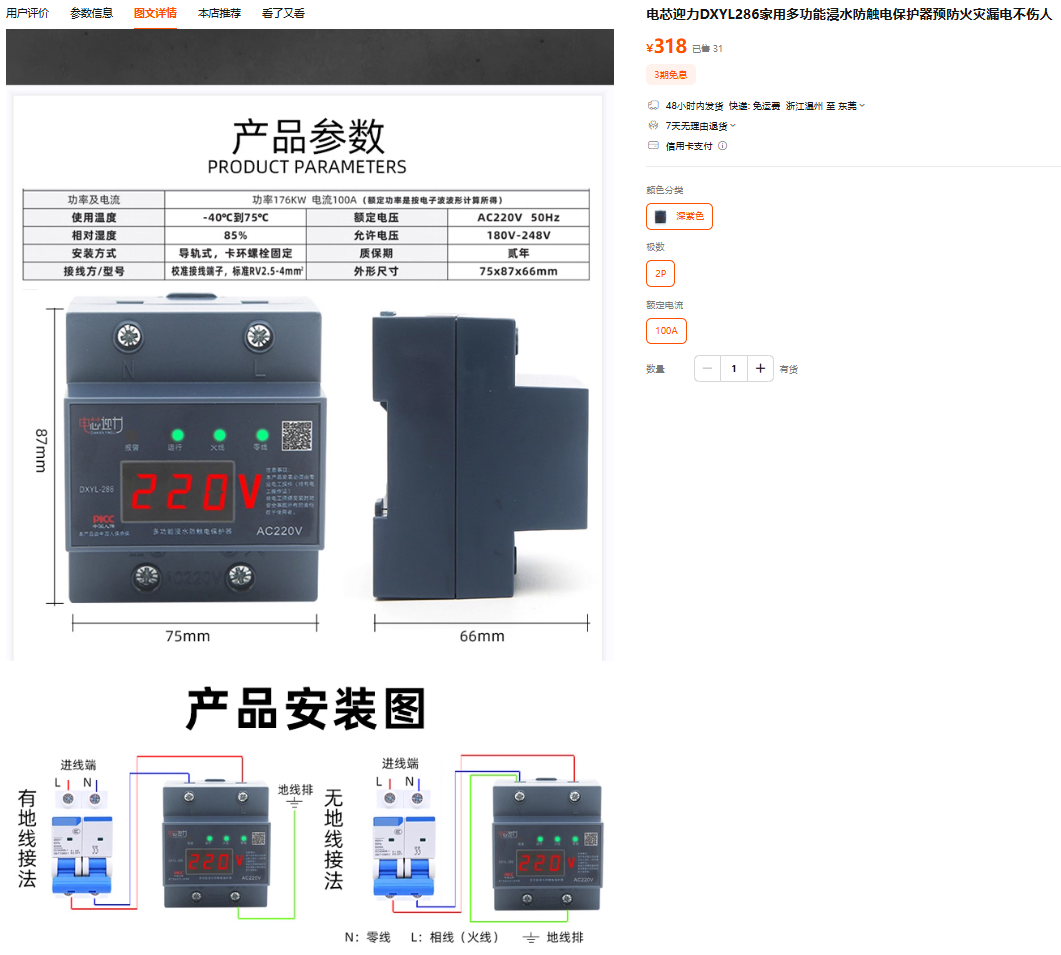 它是并聯在主漏電保護器下面的,只要在這個漏電保護器下面的都可以保護的,也不知道真假這玩意。就是進了三根火線,出了一根地線。不帶負載,也不帶出火線。