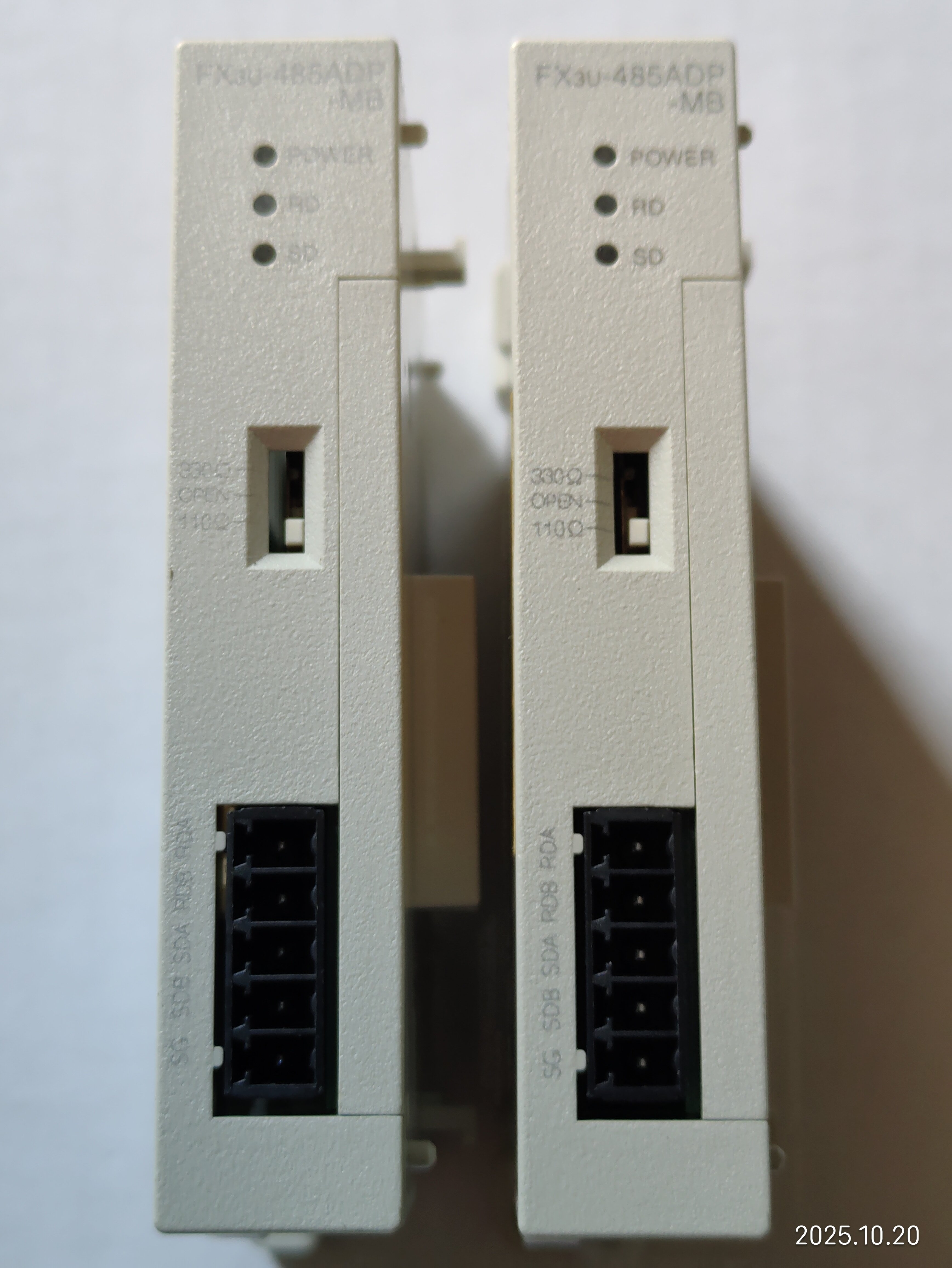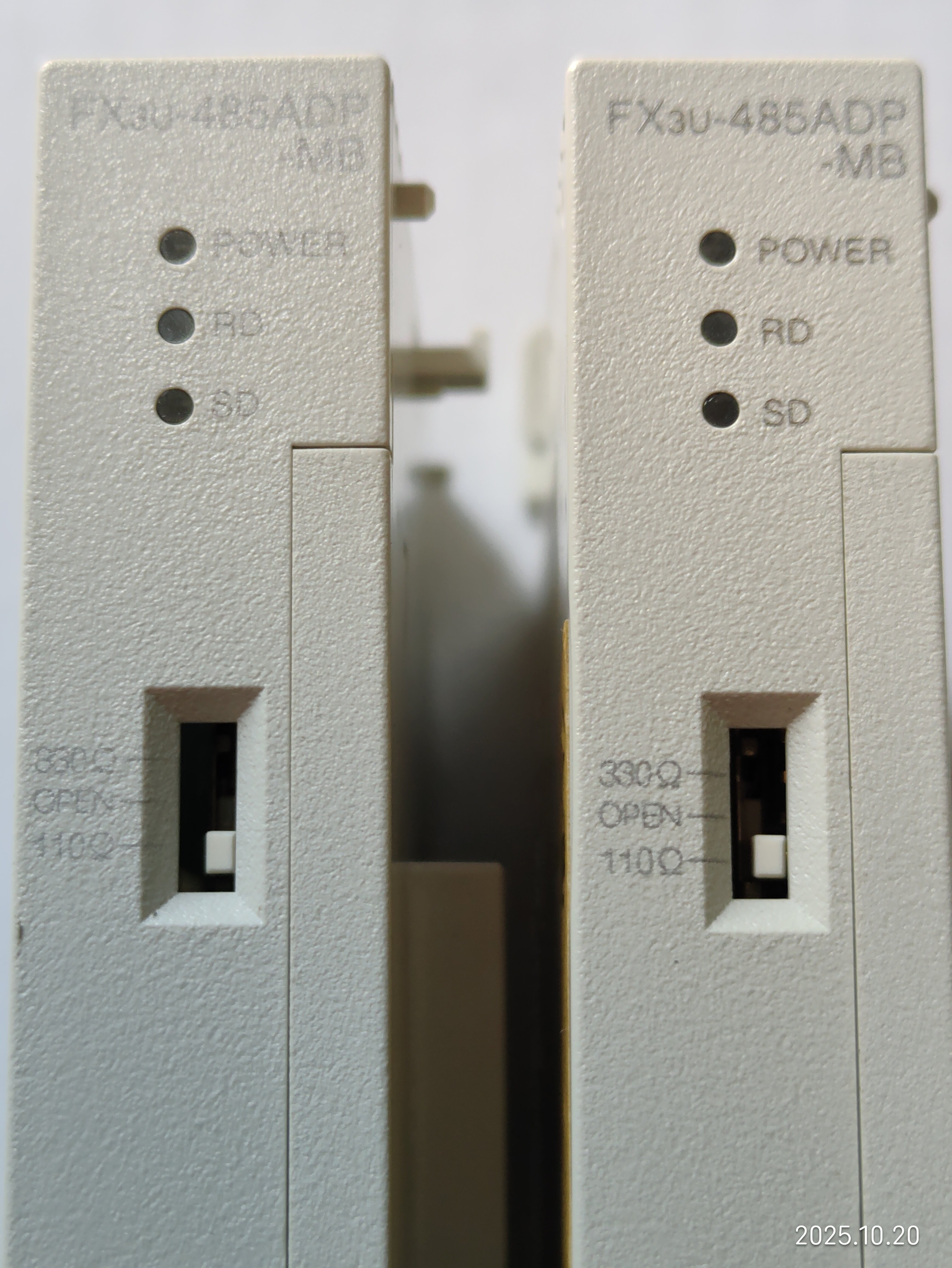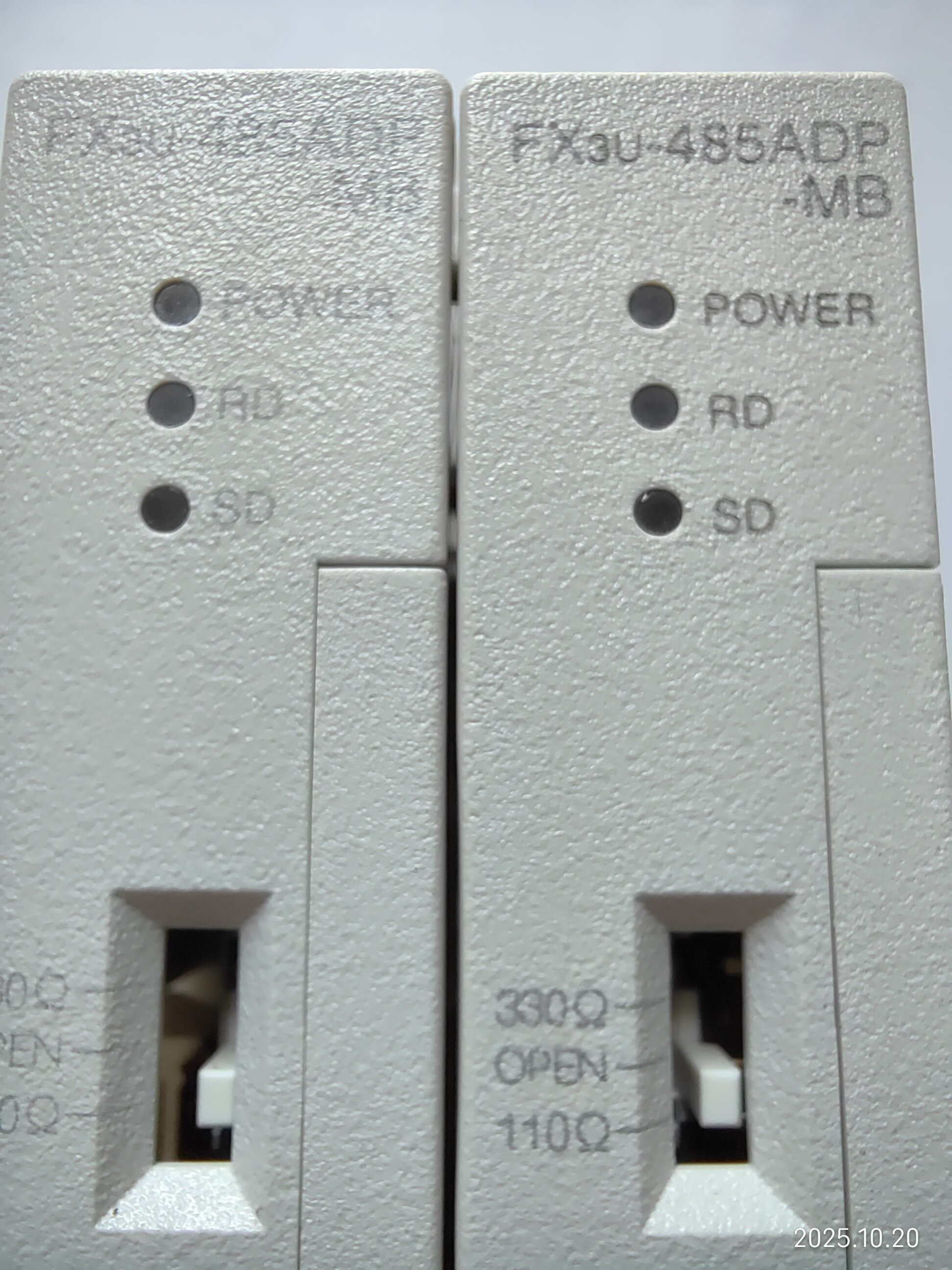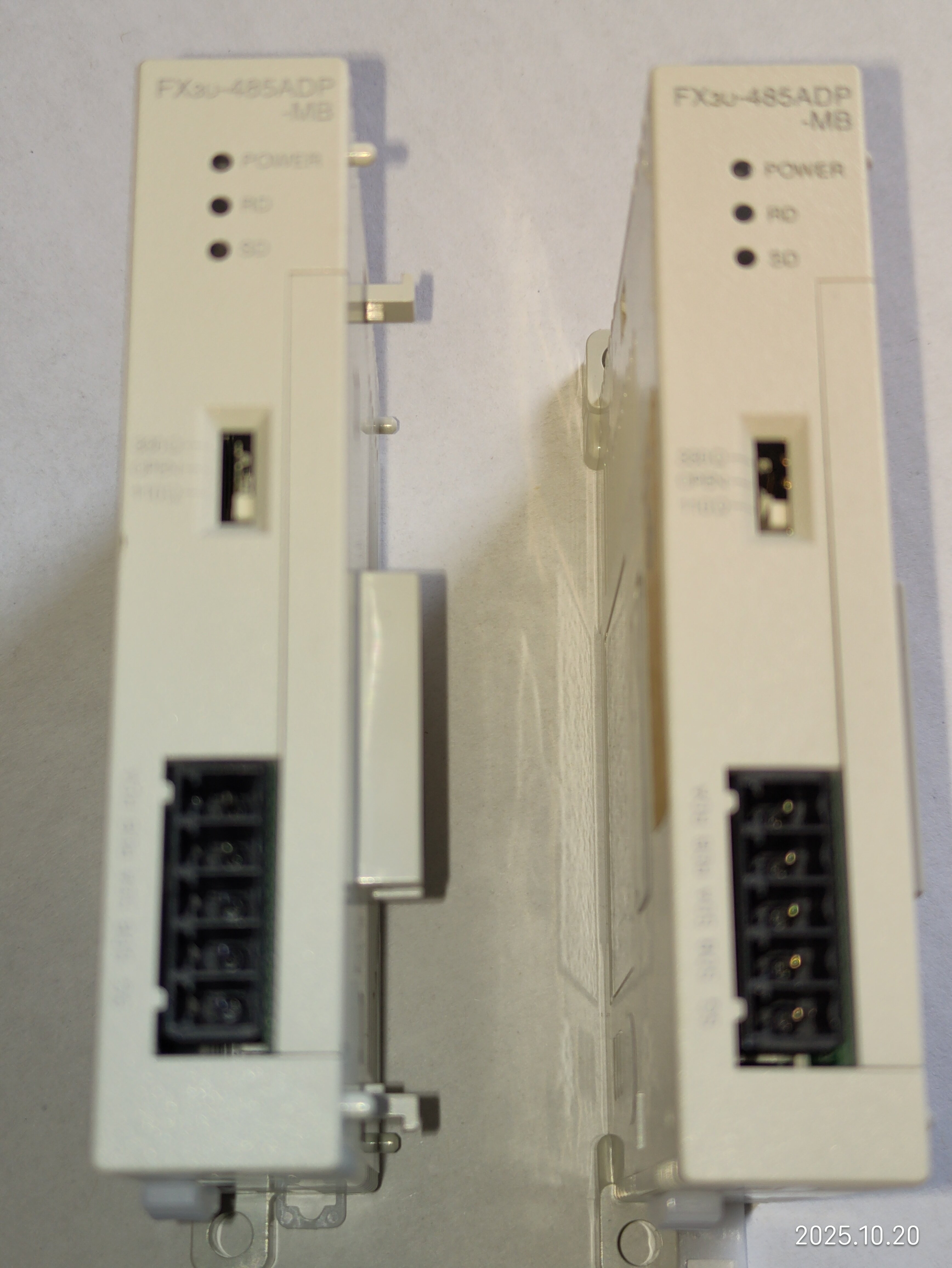 備注“7,8線”的是今年3月上線使用的,用于和主PLC 485ADP-MB通信,十一假期回來發現有問題,把備注“臺面”的換上去也用不了,現場用電腦直接通信也連接不上,后來買了新的485ADP-MB和485BD一起換了,才連接上。