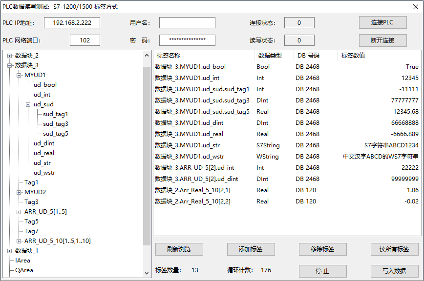 西門子S7 PLUS協議,支持標簽方式讀寫PLC數據,能瀏覽到PLC中所有標簽、塊以及結構體的信息,支持加密訪問。