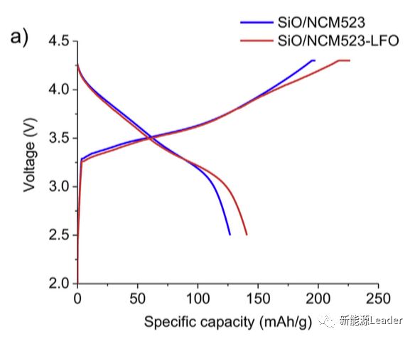 相比于負(fù)極補(bǔ)鋰,正極補(bǔ)鋰工藝最大的優(yōu)勢(shì)在于安全性和便利性,不改變現(xiàn)有的生產(chǎn)工藝,不需要引入新設(shè)備,僅僅是在勻漿過程中在正極漿料中加入部分高容量的含Li氧化物。2016年阿貢國(guó)家實(shí)驗(yàn)的Wenquan Lu課題組首次報(bào)道了用于正極補(bǔ)鋰的Li5FeO4材料【1】,通過在LCO/硬碳體系中添加少量的Li5FeO4材料,首次效率提升10%,并改善了循環(huán)性能,最近他們又將該材料應(yīng)用在SiOx/NCM523體系中,改善了SiOx材料首次效率降低的問題【2】,提升了鋰離子電池的比能量。
